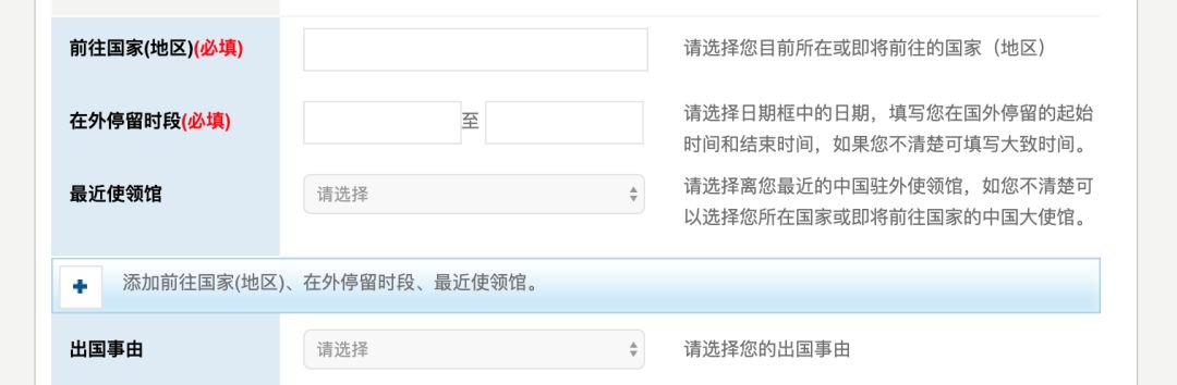 登记前往美国以及在美国停留时段,然后选择最近的使领馆。